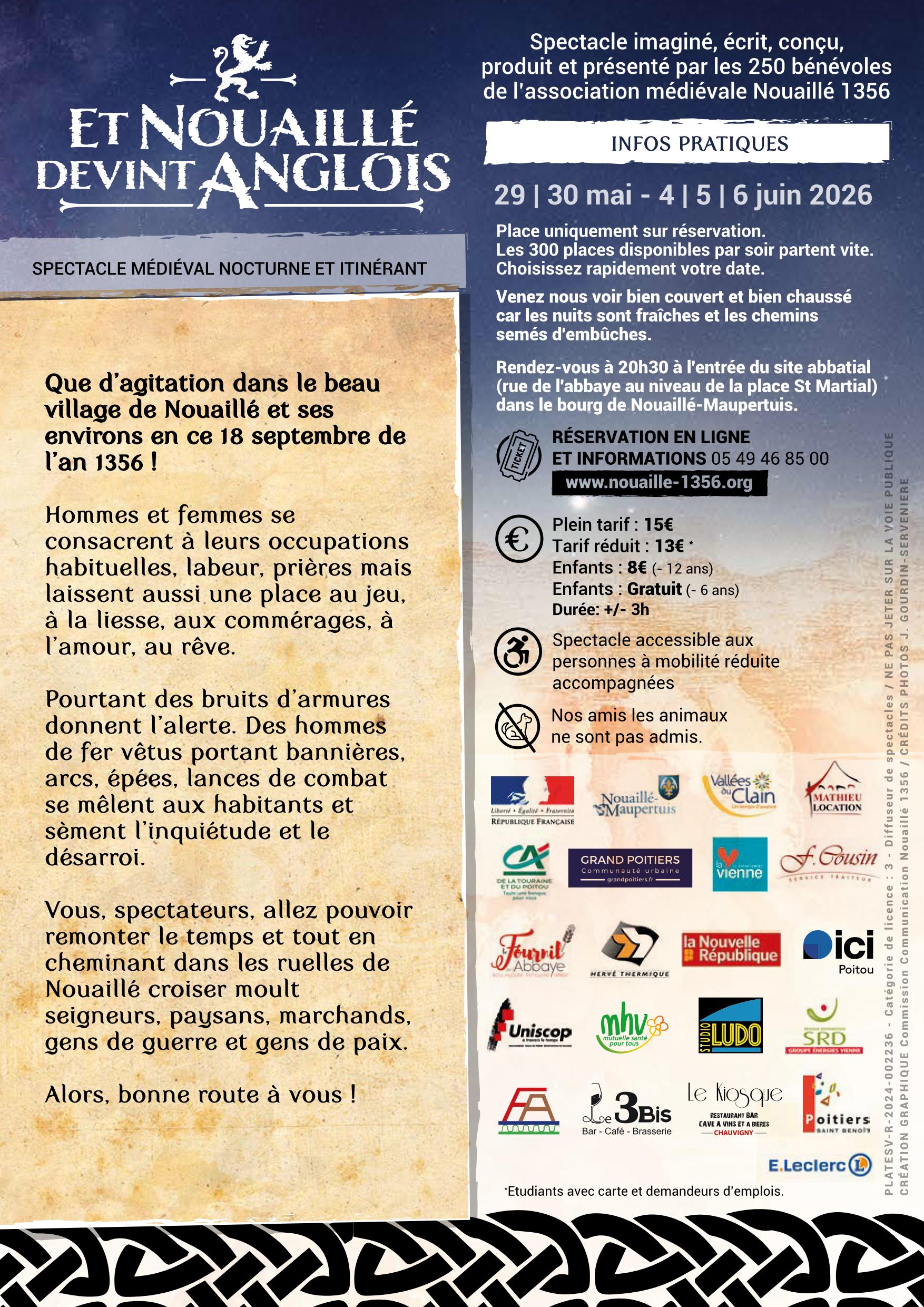 Que d’agitation dans le beau village de Nouaillé et ses environs en ce 18 septembre de l’an 1356.! Hommes et femmes se consacrent à leurs occupations habituelles, labeur, prières mais laissent aussi une place au jeu, à la liesse, aux commérages, à l’amour, au rêve.