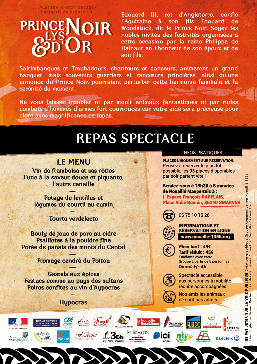 Edouard III, roi d’Angleterre, confie l’Aquitaine à son fils Edouard de Woodstock, dit le Prince Noir. Soyez les nobles invités des festivités organisées à cette occasion par la reine Philippa de Hainaut en l’honneur de son époux et de son fils.